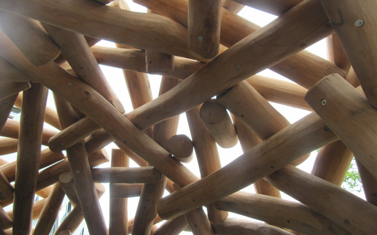 Auf unseren Spielanlagen verwenden wir vorwiegend krummwüchsige Robinienstämme sowie Eichen- und Lärchenholz aus europäischen Wäldern.