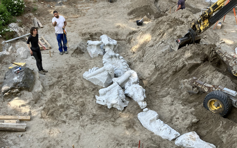 Dinosaurierskelett und Wasserspiel Bagno Publico, Bellinzona